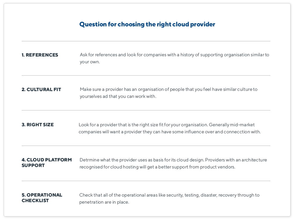 The answer to this question will depend on how competent your organisation is in managing and implementing cloud infrastructure and how much support you are likely to require.