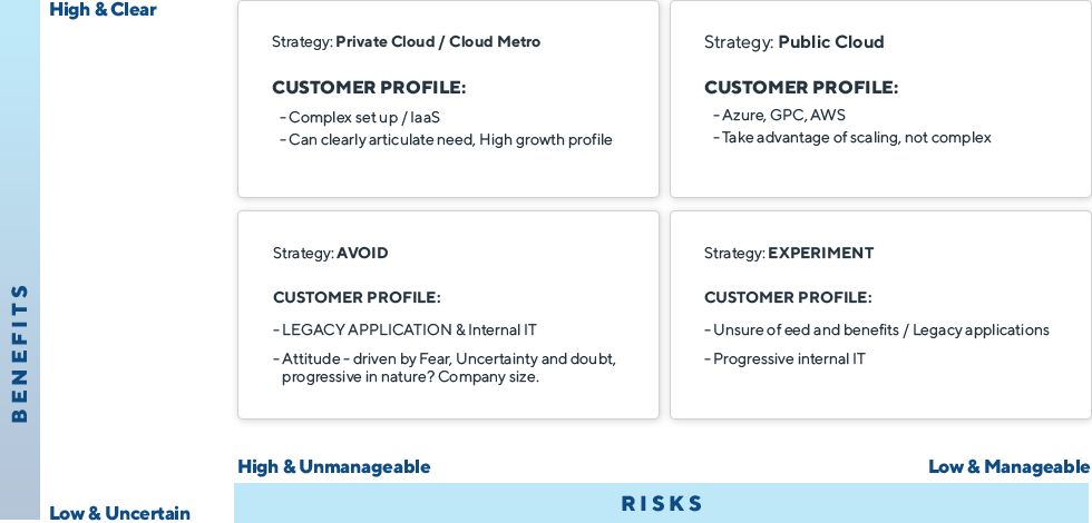 • Strategy – What has their cloud strategy been? What is it going to be? What are their plans for the next three to five years?